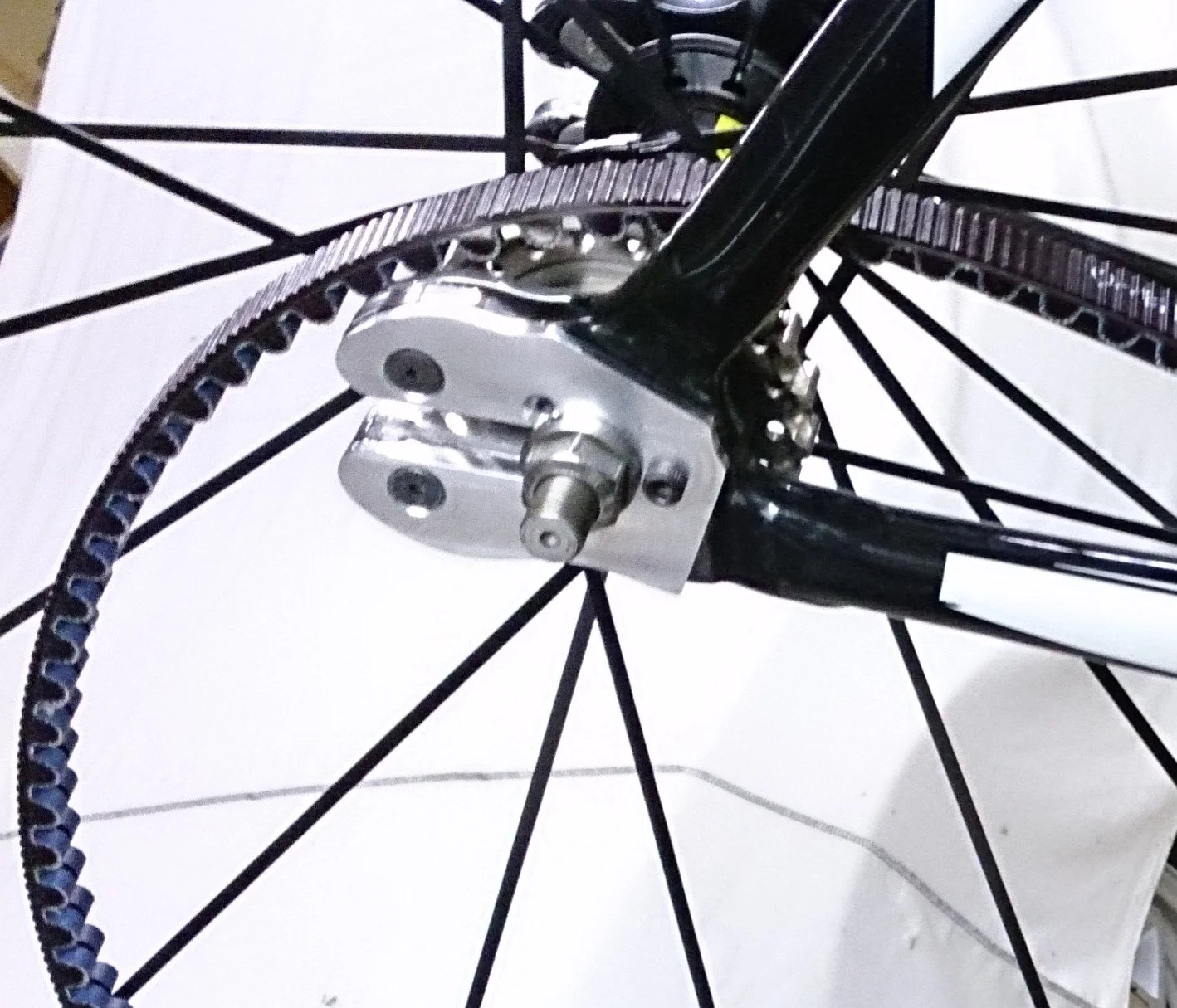 Designed and machined a belt tensioning device, and bolt together structural plates, enabling modification of the frame rear dropout to allow the belt to pass through the rear triangle of the frame.